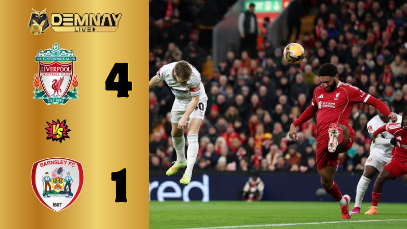 Trong khuôn khổ vòng 3 FA Cup,Liverpool có cuộc đọ sức với đối thủ hạng dưới Barnsley. Quá vượt trội so với đối thủ về đẳng cấp,“Quỷ đỏ Merseyside” dễ dàng giành chiến thắng với tỷ số 4-1. “Bom tấn” Florian Wirtz tiếp tục thể hiện phong độ cao gần đây khi ghi một bàn thắng. Các pha lập công còn lại của đội chủ nhà thuộc về:Szoboszlai,Frimpong và Ekitike. Bàn gỡ danh dự duy nhất của đội khách thuộc về Philips.